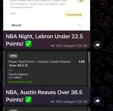 From 1. To November 10.76 units was made. There is up’s and down’s as always! From 86 bets, 52 bets went green, 1 refund, usually 1.6-1.9 odds, some 3+ odds parlays won. Right now focusing on NBA and some Greece Leagues. Join Our journey! Stake max 5% of Your capital! It’s betting, there will be up’s and down’s, and it’s totally normal. Now let’s make some money!